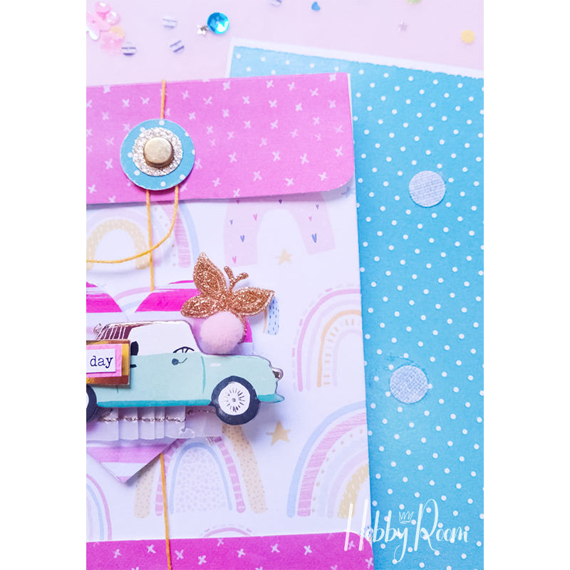 כאשר ניגשתי לקשט את המעטפה זו הייתה משימה קלה מפני שאת הקישוטונים הכנתי מראש! ונותר לי רק להוסיף אותם - קישוטון לב ורוד השתלב מצויין ומדבקת הילדה של Sunny days התאימו פרפקט:)
