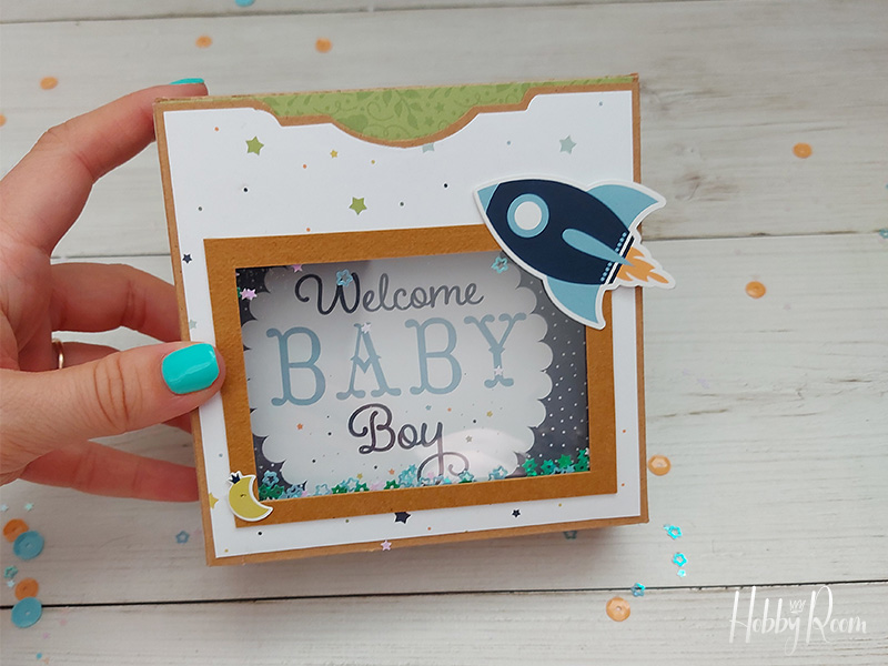 בתכנון המקורי הכנסתי את התגיות הנוספות מהסטאק לכיסים והדבקתי אליהן תמונות מוקטנות. אבל המראה המוגמר יצא מנופח מדי לטעמי, ולכן יצרתי, בנוסף לאלבום, קופסה קטנה ומתוקה שבה אשמור את התגיות האלו. את הקופסה הכנתי מדף קארסטוק אחד בגודל 12*6 אינצ', שנשאר לי שארית מהכנת האלבום ולמראה תלת ממדי הוספתי חלון שייקר נצנצים בצבעים תואמים שמאפשר הצצה לתוך הקופסה, זה יצא כל כך מתוק, אין לתאר.