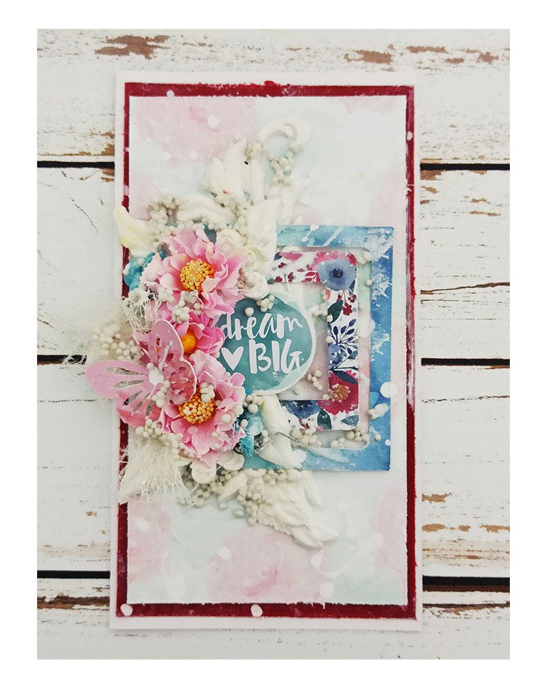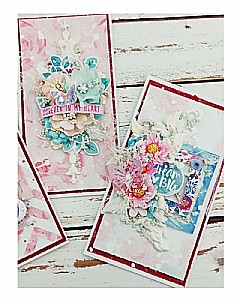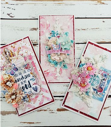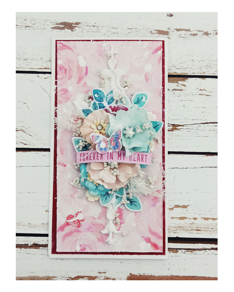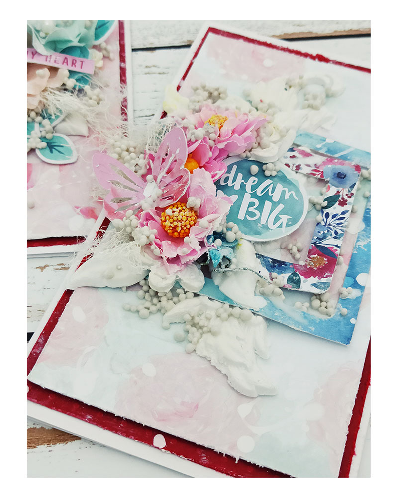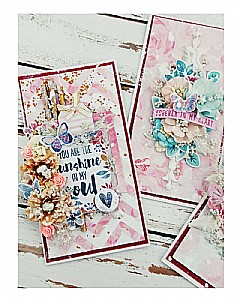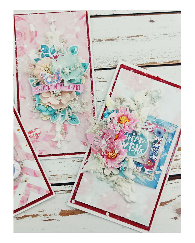 הכרטיסים בנויים בטכניקת השכבות כאשר השכבה התחתונה מהסטאק שושנים בכפר היא הבסיס שלי לבניית הקומפוזיציה.
