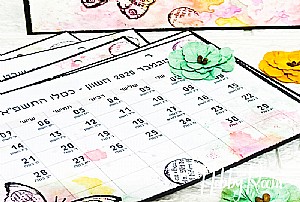 לוח שנה בטכניקת מיקס מדיה - שלהב גאן
