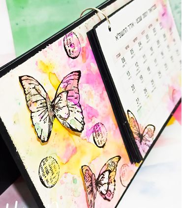 הטכניקה מאוד קלה - קצת מים ,התזות, חותמות, ויש לכן לוח שנה בסגנון מיקסד מדיה .