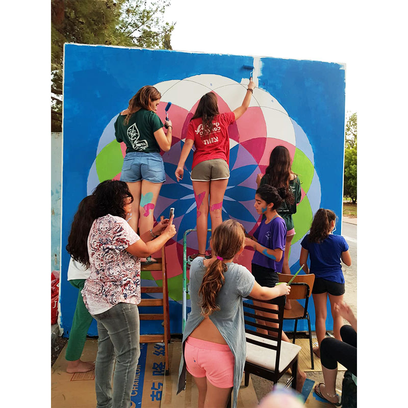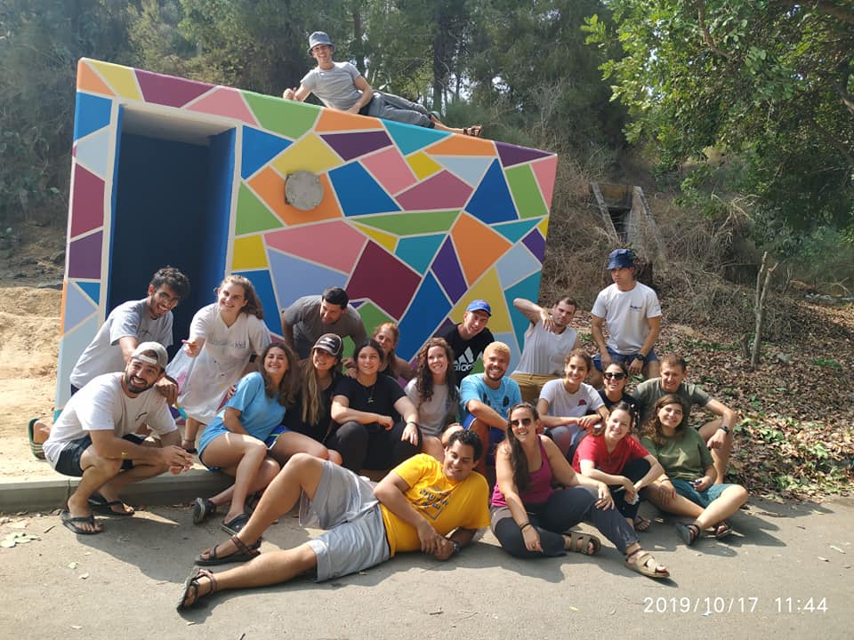 לאחר מכן אני המשכתי את הפרויקט יחד עם ילדי בר המצווה כמשימה קהילתית! קבוצות של תורמים מחו"ל, וקבוצות שונות שבאו לביקור, כולם היו שותפים יחד בצביעת המיגוניות.