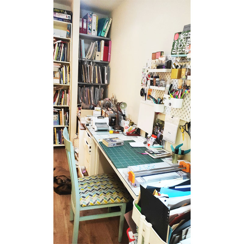 מספר ימים לאחר מכן הרגשתי שאני חושבת על הסדנה יום ולילה והייתי עדיין בהתרגשות מהתהליך שאליו נחשפתי. הבנתי שזה מה שאני רוצה לעשות – זה הדבר!!!! מצאתי את עצמי מצטרפת לקבוצות יצירה בפייסבוק, עוקבת, מפרגנת ושואלת ויוצרת. תוך חודשיים רכשתי את כל הכלים והחומרים האפשריים! הקמתי מיני סדנא במסדרון הבית המוביל לממ"ד ויש בה הכל מכל וכל!!! את רוב החומרים אני מזמינה מחו"ל יש לי חברה טובה שמתגוררת בארה"ב ובכל ביקור אצלה אני חוזרת עם מזוודה מלאה בחומרי יצירה (Hobby Lobby היא החנות המועדפת ) וחברתי גם דואגת לשלוח לי את מבוקשי.